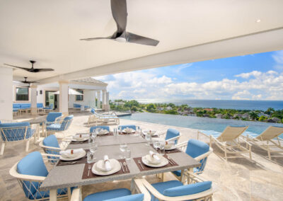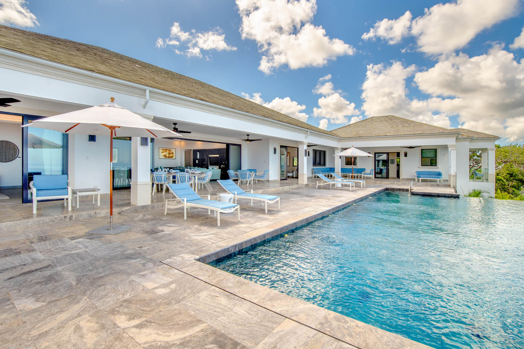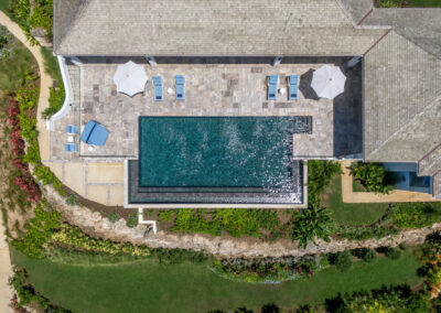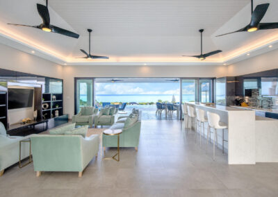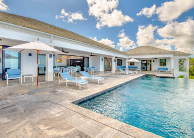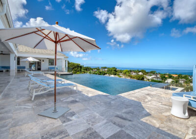 Take a refreshing dip in the expansive infinity-edge pool, the centerpiece of the outdoor living area. As you soak up the Caribbean sun and captivating views, enjoy a refreshing cocktail from the private bar located beneath the pool. This unique entertaining area, accessible via a staircase, adds another layer of luxury and functionality to Horizons.