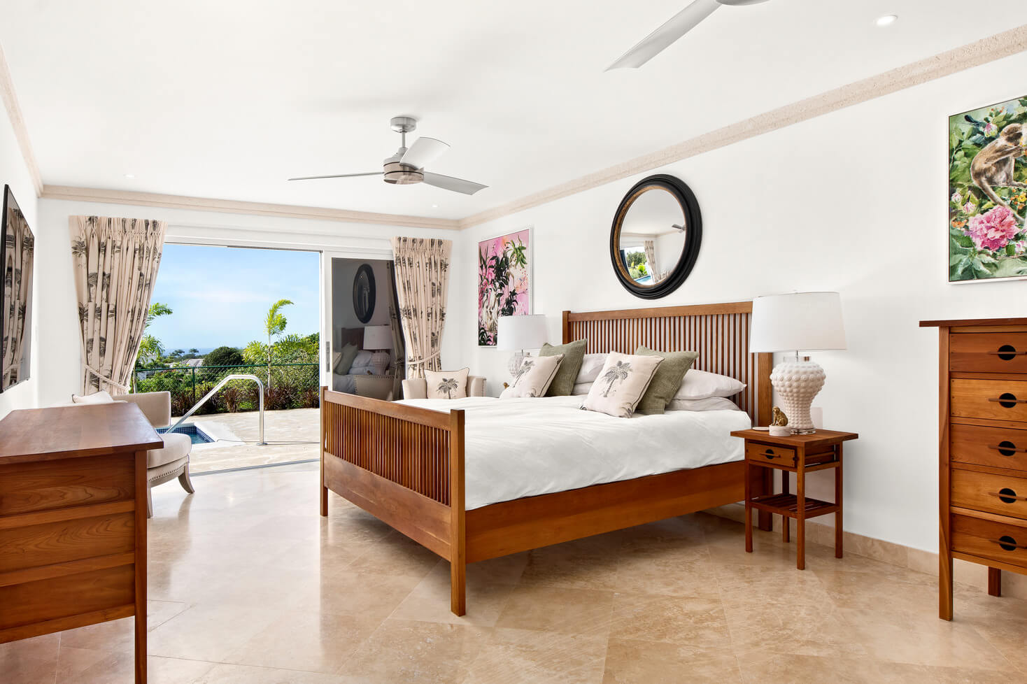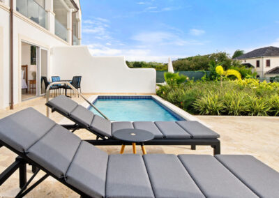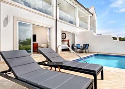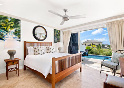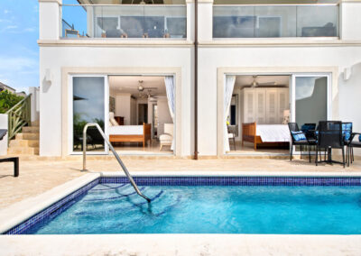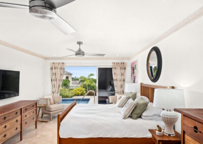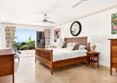 Designed with comfort and privacy in mind, Berkan Construction Services constructed each Mahogany Heights townhouse with four bedrooms situated on the cooler ground floor. This thoughtful layout ensures optimal comfort during the warm Barbadian climate. The master suite features a luxurious en-suite bathroom and a large sitting area that opens onto the garden, pool, and patio through floor-to-ceiling sliding glass doors. Two additional guest bedrooms share a spacious family bathroom, while a fourth en-suite master guest bedroom offers ample space and privacy on the mezzanine floor.